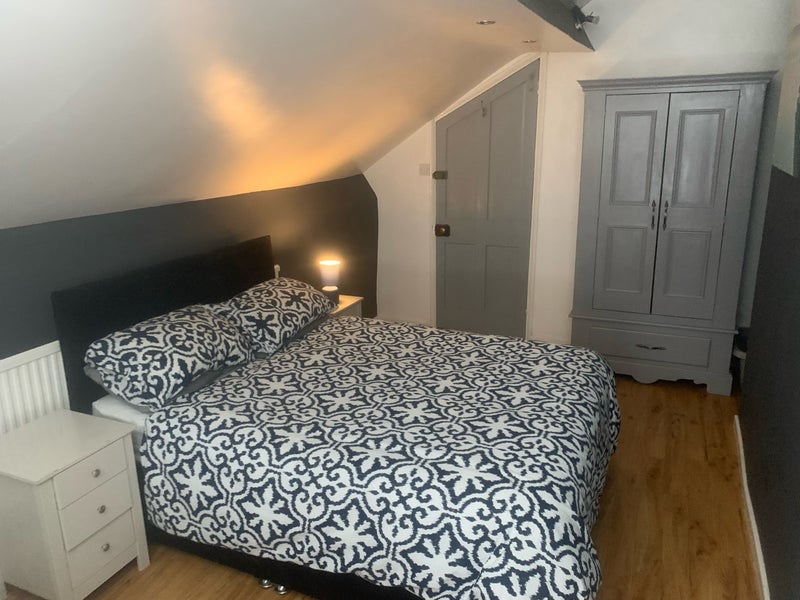 The newly decorated bedroom has a double bed with matching furniture, bedding & tv
