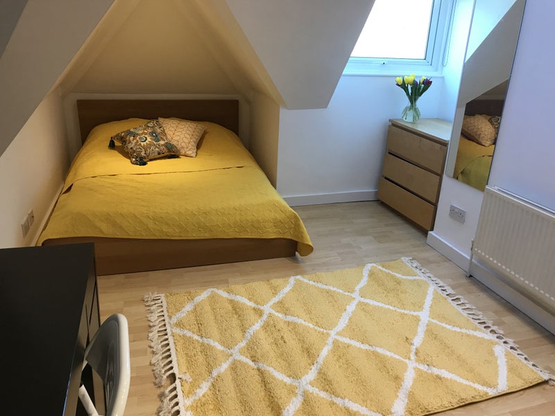 Top floor flat on top of old Victorian house on Riverdale Road. Great location with ample on street parking, close to transport links, walkable to the hospitals and university. Close to endcliffe park and easy access to the peaks. Suitable for professionals or post grad students. Roof terrace offers outdoor space and lovely views from bedrooms and lounge. Open plan kitchen diner. Council tax and water bills included. The flat has three double rooms, this room has a shared bathroom with one other flatmate. Amenities include fridge freezer, dishwasher, new oven and new washing machine. Separate toilet and shower room. Plenty of on street parking