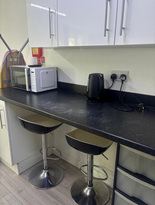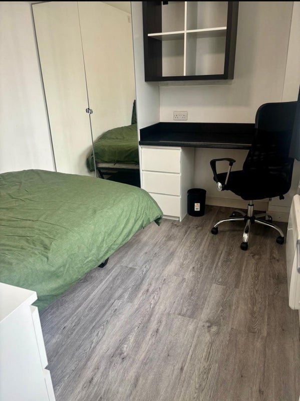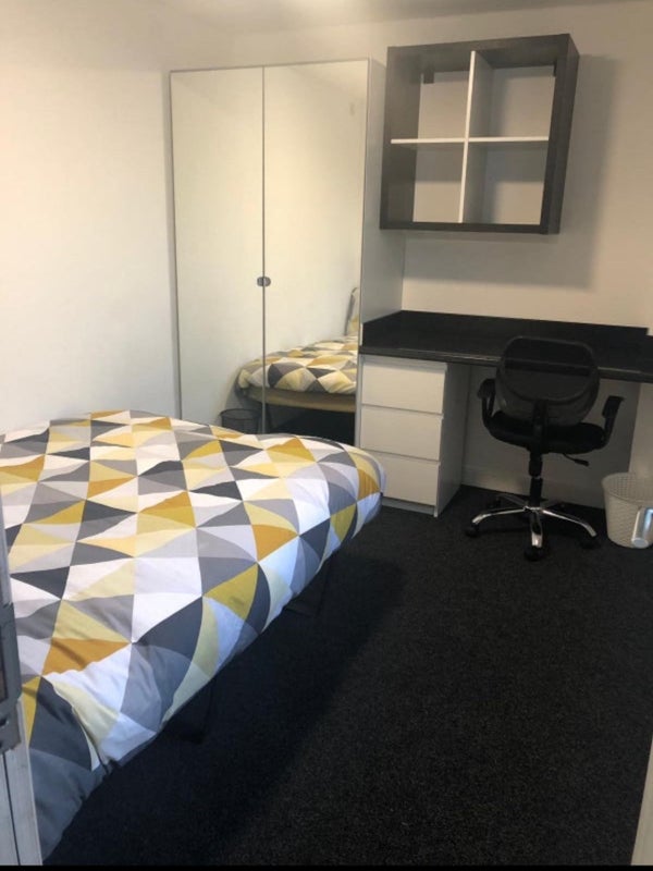 The double bedrooms come furnished with a double-sized bed, wardrobe, desk, chair and shelves.