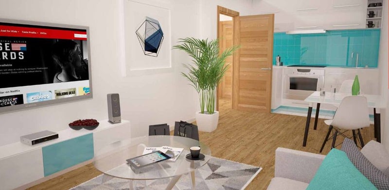 - Living Area - Each apartment has its own fitted kitchen with high quality furnishings and modern appliances including a ceramic hob, integrated fridge freezer and plenty of cupboard space.