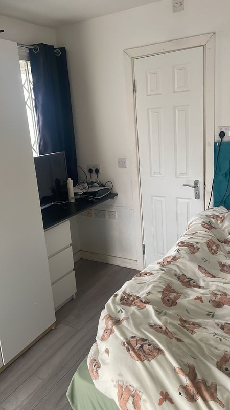 🛏️ Comfy double bed & full storage – wardrobe, desk, chair & shelves