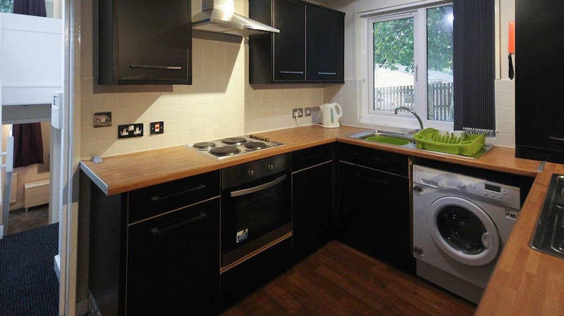 <b> - Kitchen & Dining </b> - Enjoy a modern, open plan living / dining area comprising of a fitted kitchen with 2 fridges, freezer, cooker, microwave, 2 kettles, 2 toasters, breakfast bar, set of bar stools and a washer / tumble dryer. The living / dining area has two sofas, coffee table, cupboards / worktop, plus wall mounted flat screen TV for your entertainment
