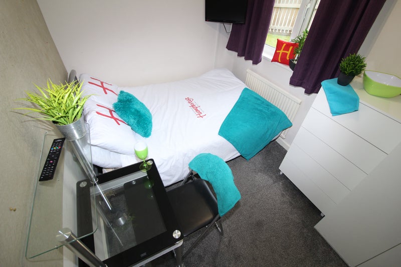 <b> - Bedroom </b> - Available to rent is a double bedroom comprising of a double bed (with storage space underneath), bedside table, chest of 5x drawers, double wardrobe, desk & chair, wall outed LED TV, double USB sockets and blackout curtains.