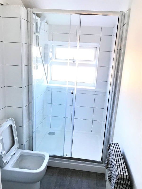 Fully renovated modern bathroom with mains pressure power shower.