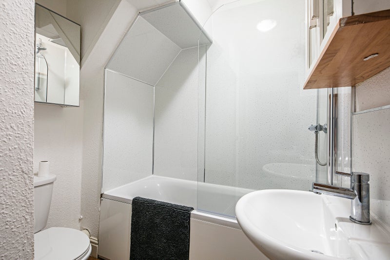 2 shared bathrooms, with shower over bath, W. C and sink.