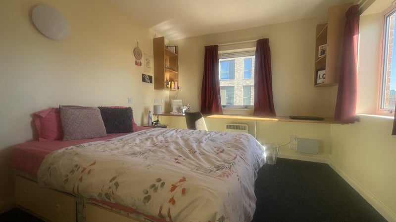This is a ensuite bedroom for just £110. It is a 5 bedroom flat with attached bathrooms and a shared communal kitchen and living space.