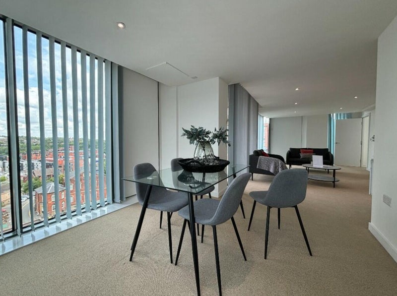 The Velocity Village Penthouse in Sheffield is an exceptional residence, renowned as the best-looking penthouse in the heart of the city. This luxurious property offers stunning panoramic views of Sheffield's skyline, combining modern design with sophisticated elegance. Located in a prime area, it provides easy access to the city's vibrant cultural scene, dining, and shopping. Perfect for discerning individuals who value both style and convenience. Your room has its very own balcony.