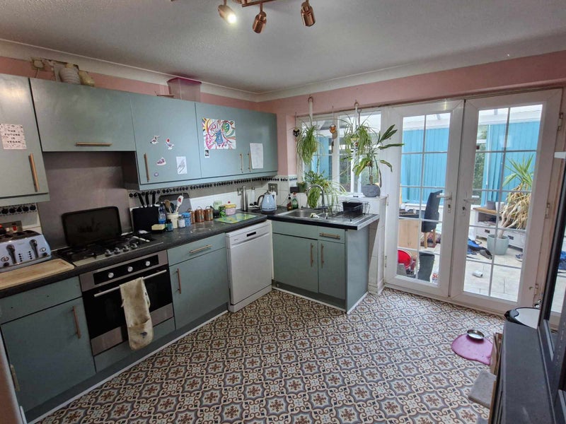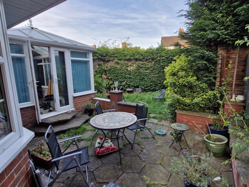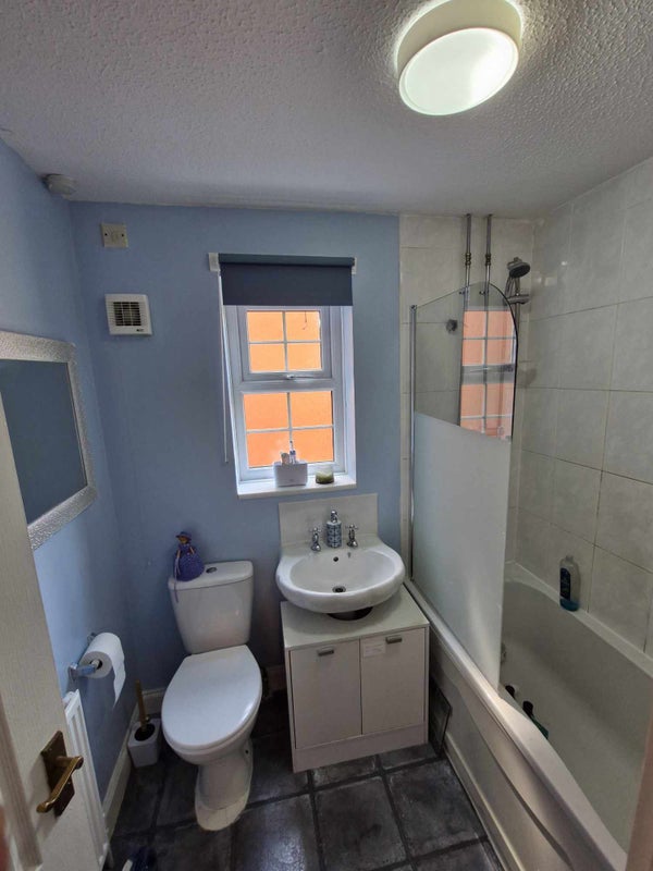 Communal spaces: large kitchen, lounge, dining room, downstairs loo, conservatory, garden, shared upstairs bathroom. Parking space available.