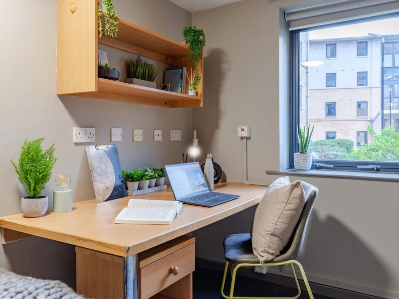 - The room is a 'Classic Ensuite' room: you have your own private bathroom, ¾ size bed, under-bed storage, shelving, desk & chair and large wardrobe.