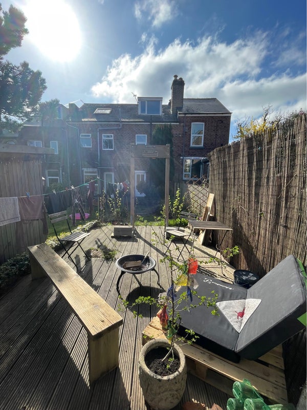 There is a garden on the back with plenty of raspberries and tomatoes to be picked in the summer months, there is a cozy patio area at the back of the garden with a little fire pit and enough room for BBQs with friends.
