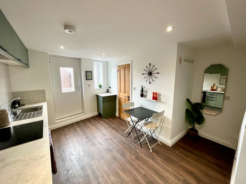 - First floor entry into a dining kitchen