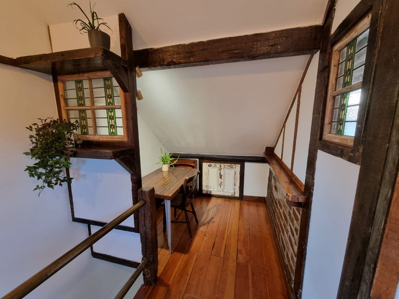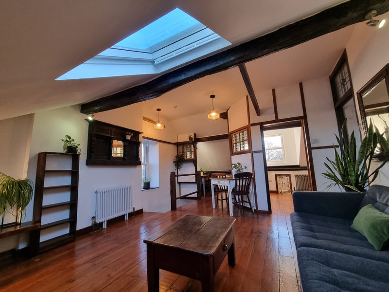 There is a really large, characterful living room, with a dining area and office/study nook.