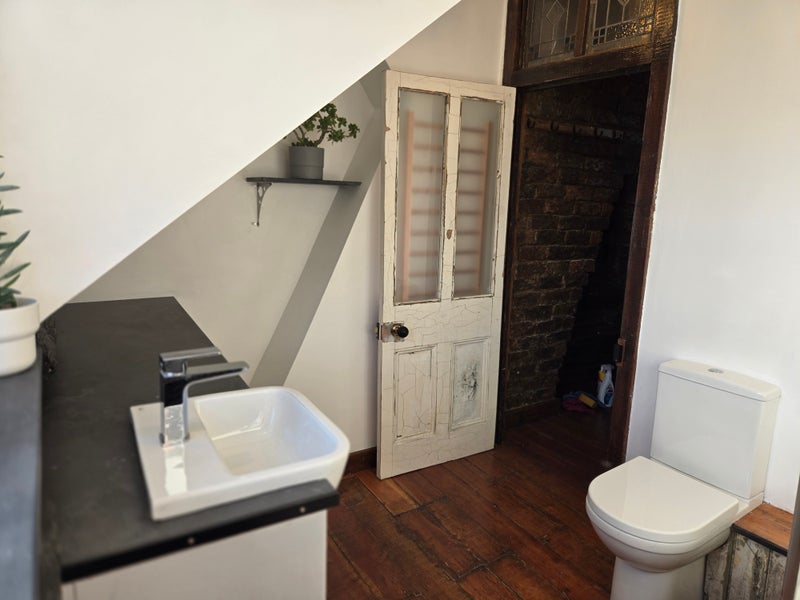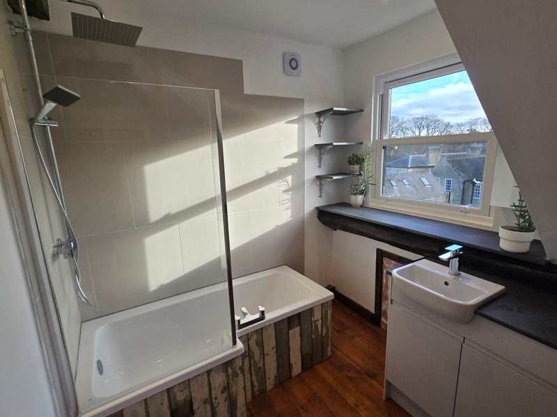 Leading off the bedroom is a good sized completely refurbished bathroom with bath and shower over it and washing machine.