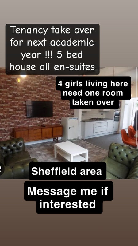 Students in Sheffield, one bedroom needs taking over, message me for more information or pictures. All the girls are fun, friendly, and welcoming, I can introduce you all.