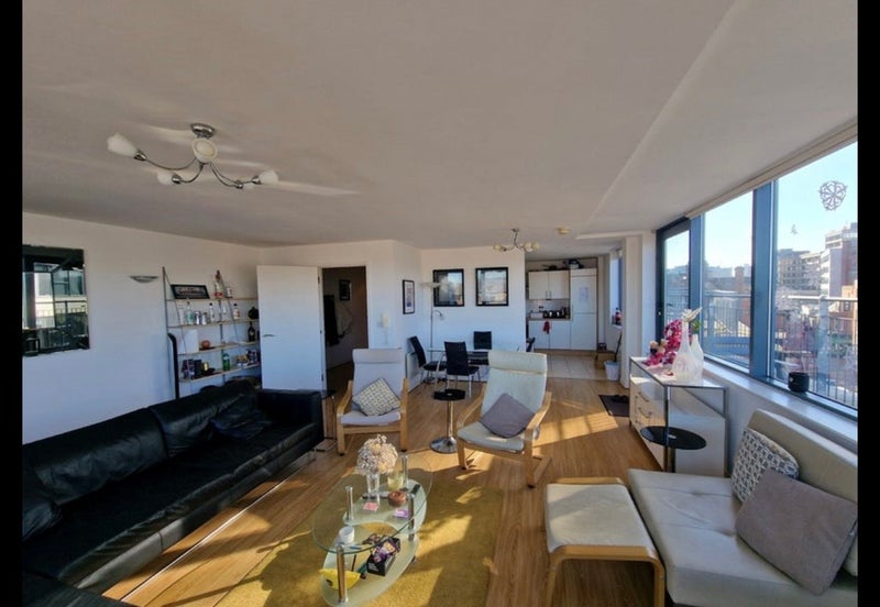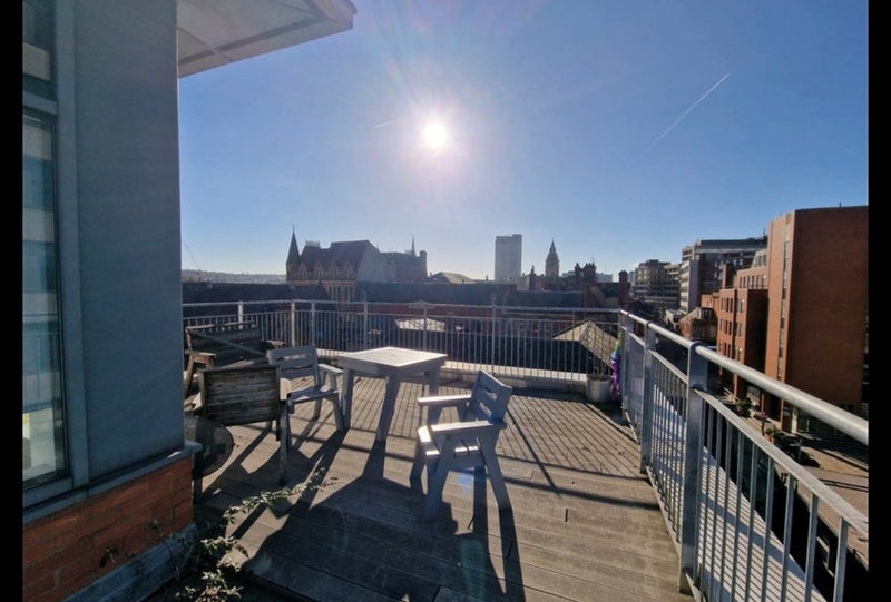 The flat is on the top floor and has so many windows, it basically glows when the sun is up. There's a roof terrace that wraps around the flat and is perfect for drinks on a summer evening. And there's plenty of space if you'd like to grow plants!