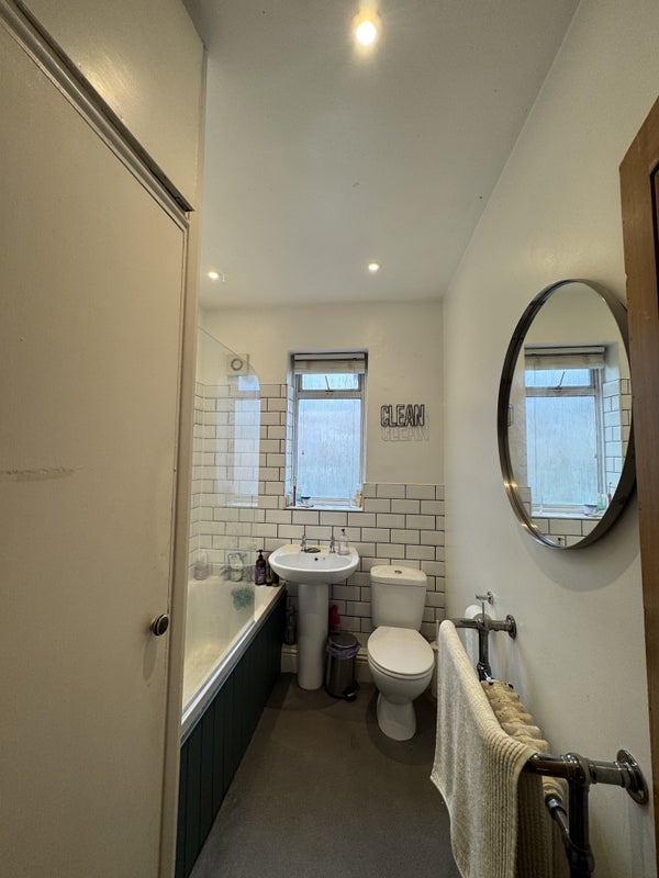 Large bathroom with bath/shower. You will be sharing this with Grace whose bedroom is also on the first floor. Large floor to ceiling cupboard inside with fantastic storage for any toiletries/makeup/cleaning products.