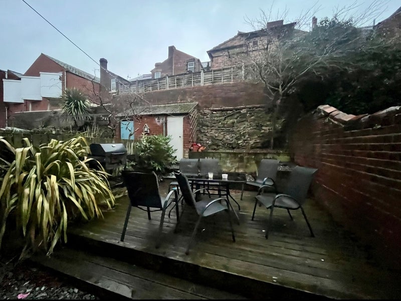 Large dining area, kitchen, living room, cute garden, plenty of storage, 2 shared bathrooms.