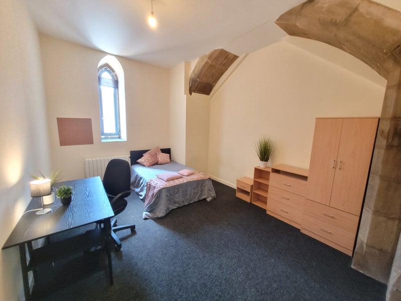 The apartment is full of character, with amazingly unique features such as stone pillars, arches and ornate lead glass windows, which adds that unique touch to this magnificent student accommodation which is unlike any other in the city!