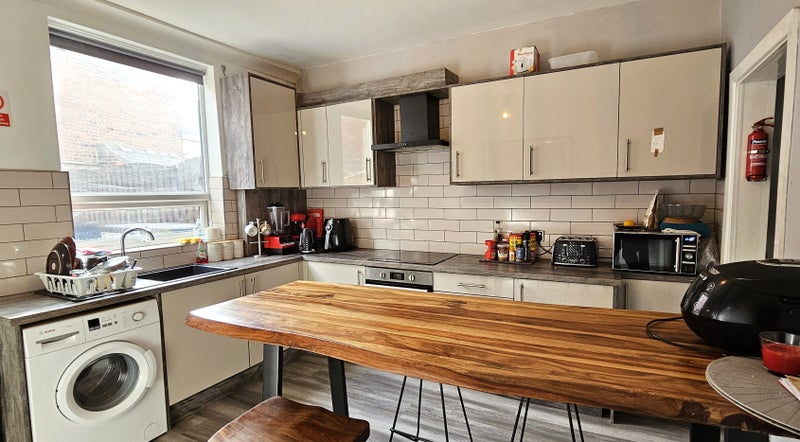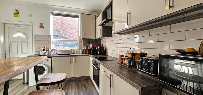 Occupants have access to a spacious and fully equipped communal kitchen with ample storage and dining space. A separate laundry room is also provided featuring a tumble dryer.