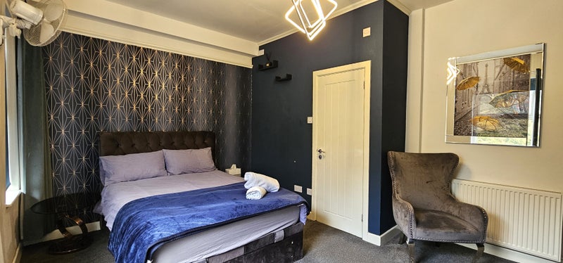 The room is generously sized and finished to a high standard, featuring quality furnishings and modern décor throughout. It benefits from a private three-piece en-suite bathroom with contemporary fittings. Additional features include a drinks fridge, wall-mounted TV and wall fan, providing a comfortable and convenient living space.