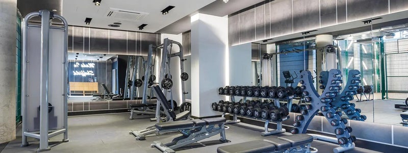On-site gym with outdoor and indoor basketball half-court