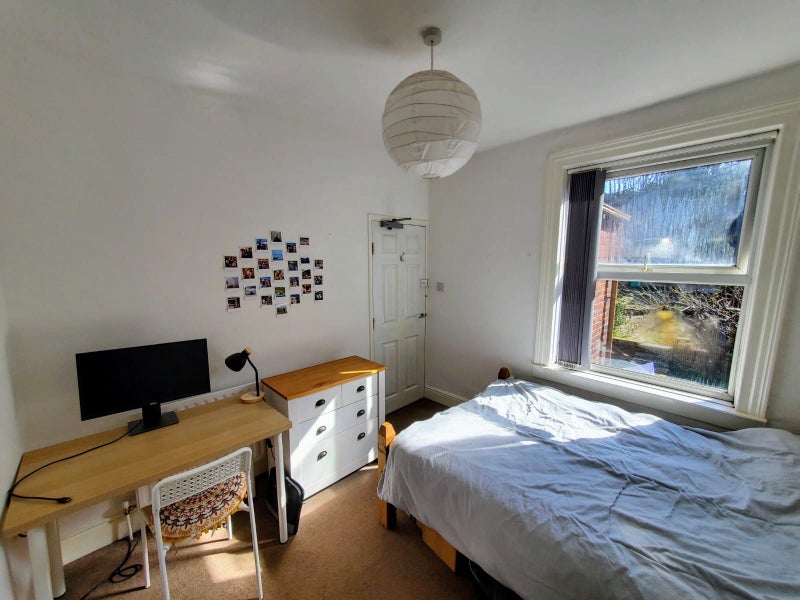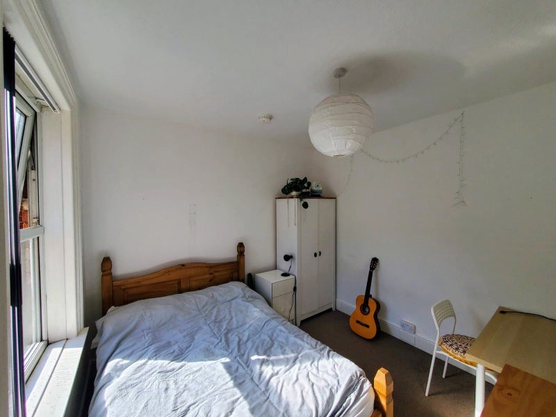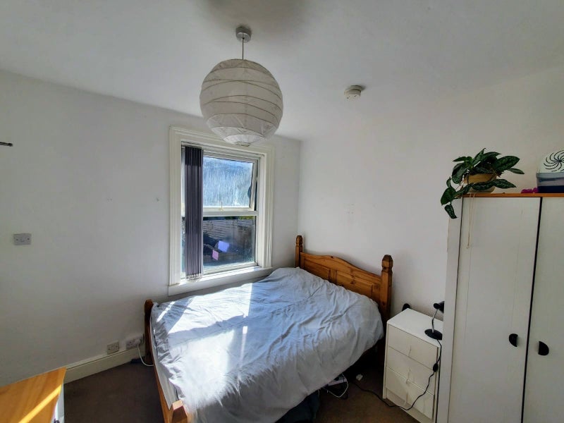 The room over looks the garden and comes furnished with a bed, mattress, wardrobe, bedside table and a chest of drawers.