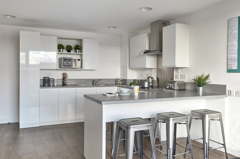 Modern ensuite room available at The Elements in Sheffield city centre. The room includes a 3/4 bed, private bathroom, study desk, wardrobe and plenty of storage. You’ll share a spacious kitchen and living area with flatmates.