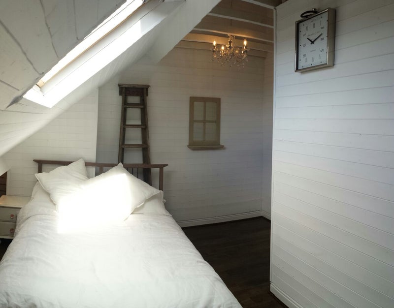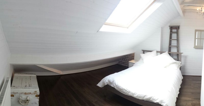Up to the next floor and you will find a well lit, furnished double attic room.