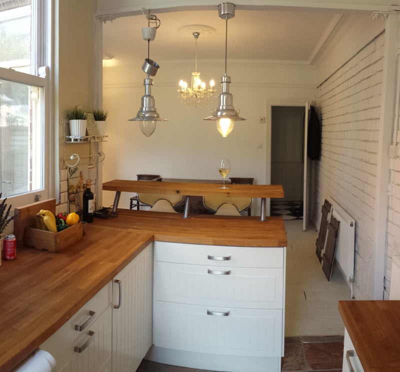 The property comprises a well lit and beautifully decorated ground floor open plan kitchen and dining area. The kitchen has a gas cooker, washing machine, fridge, kettle, toaster and microwave. From the kitchen; french doors open up to a well kept garden, great for summer BBQ's.