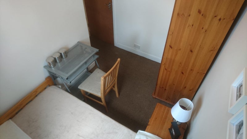 This room come complete with solid wood furniture, consisting of a bed, bedside table, double wardrobe, desk and chair.
