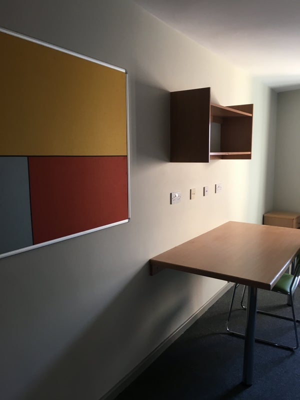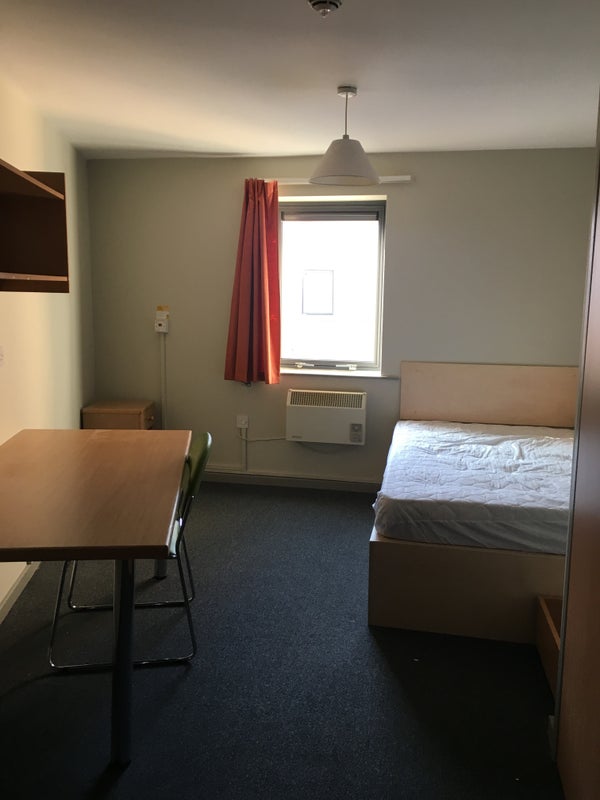 3/4 bedroom with en suite at a really good size for the price. The room is spacious with a very large desk, bookshelf and a double wardrobe. In the flat, you share a kitchen and living room with 4 other people (2 males and 2 females). In the kitchen there is a fridge freezer, an oven, 2 sinks, toaster, kettle, bin, hoover and ironing board. The people currently living at the flat are lovely and very welcoming. The deposit for the whole year has been payed. Due to it being student halls you are surrounded by hundreds of students in that accommodation and the other halls around it. Devonshire Courtyard is located in the centre of the city, with all of the amenities that you could possibly want. being close to the majority of the pubs and clubs and just a small walk away from the nearest shops on west street and division street. It is also located about a 10 minute walk from both Sheffield Hallam campuses.