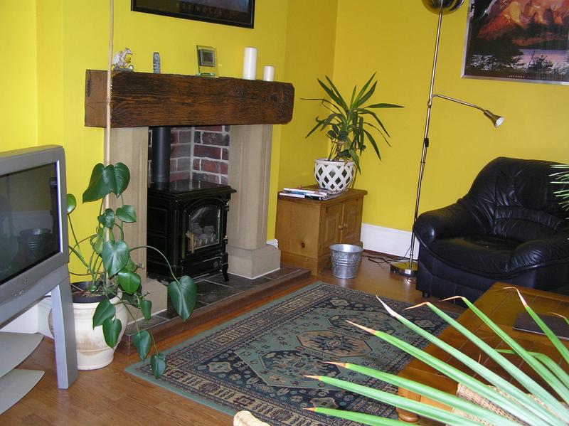 Lounge with gas heating stove.