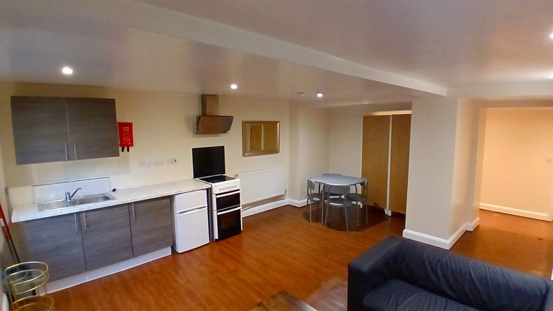 Studio has its own kitchen with oven, fridge, freezer and extractor. The bedroom has a double bed, mattress and 2 wardrobes. The living area has a sofa, desk, chair and smart Ultra HD TV.