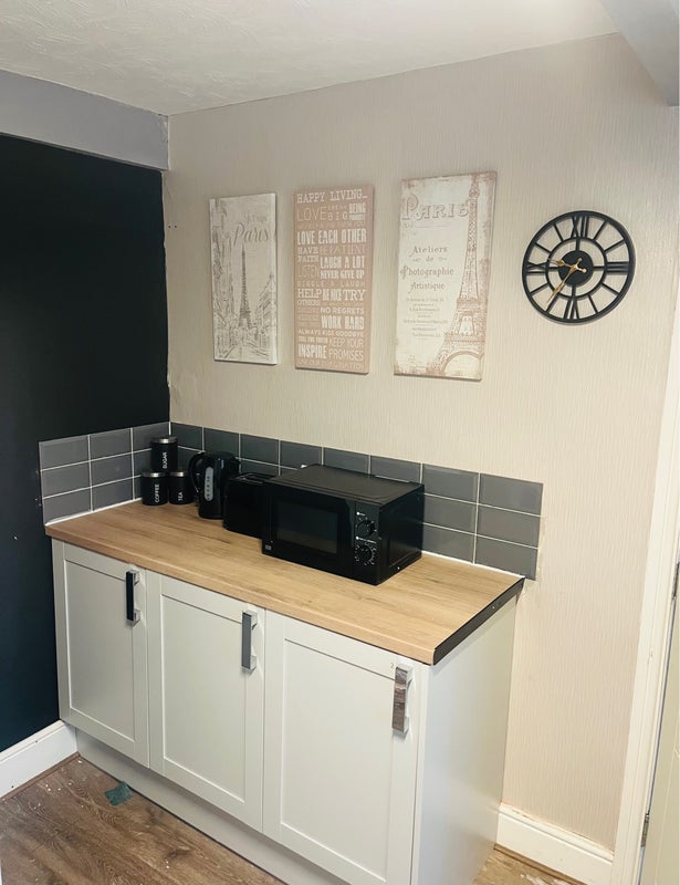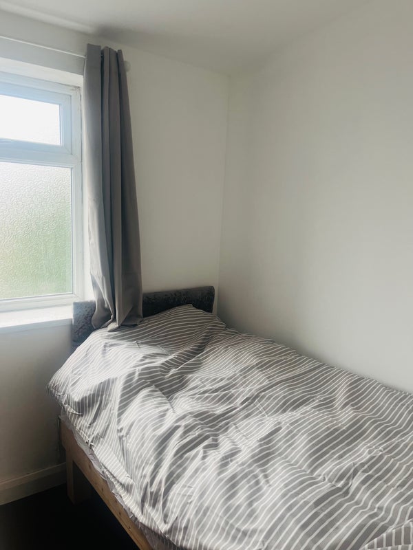 Room with bed, bedside cabinet, drawer unit, table and chair and extra storage available. Newly refurbed shared kitchen with cutlery to share or bring your own, laminated floor, fridge freezer, gas cooker, microwave, toaster, kettle, washing machine, separate dryer, ironing facility. Carpeted all rooms and landing.