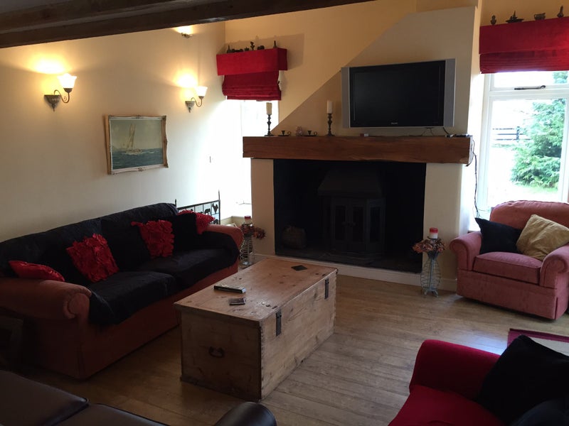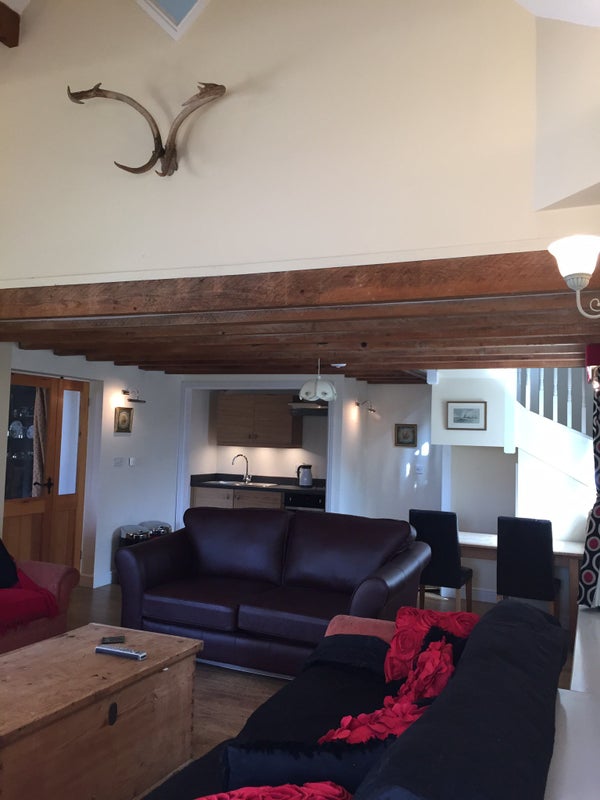 Barn Conversion attached to main house. accommodation includes first floor bedroom with ensuite off, large lounge and self contained kitchen on ground floor. vaulted ceilings to lounge with wood burning stove, underfloor heating, 2 sofas, kitchen table, self contained kitchen off.