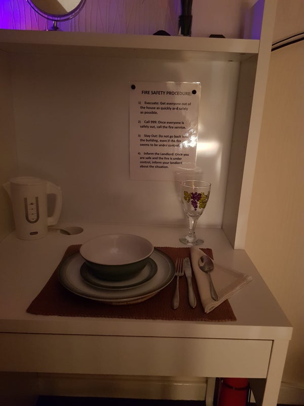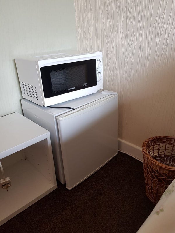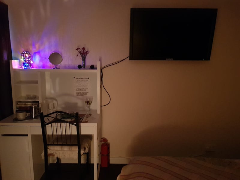 This master bedroom has a comfortable double bed, a dedicated work/eating area, microwave, mini-fridge, kettle plus basic eating utensils and cutlery. There's a large wall hung monitor, fibre wifi and firestick. There's plenty of shelf storage space plus a large double wardrobe. There is current two tidy bathrooms, consisting of a shower, basin and toilet.