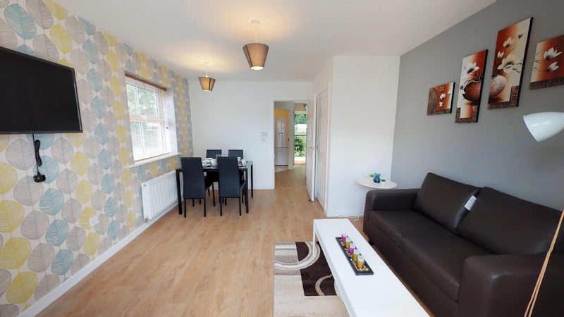 The house consist of 4 ensuite bedrooms which are refurbished with a single bed, mattress, wardrobe, chest of drawer and bedside table. Every room has its own shower, sink and toilet. The house itself boasts a large living room with a super comfortable sofa, flat screen TV, coffee table and contemporary wooden flooring.