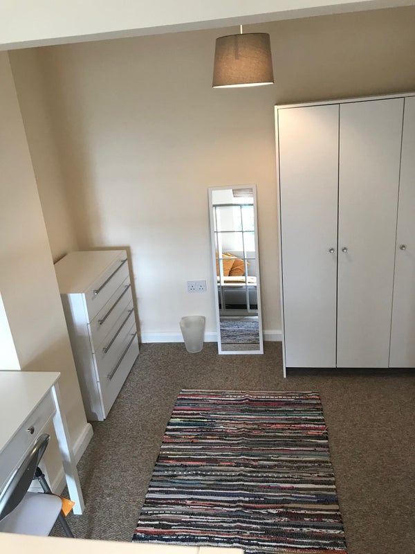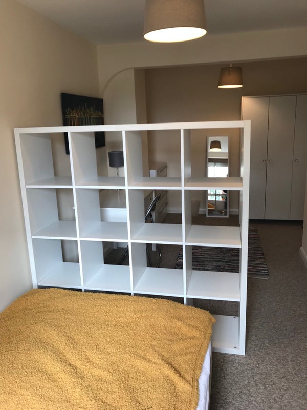 Room 4 - Newly repainted long and large room on middle floor of house. With private 'off-suite' bathroom on the ground floor separate to the room, but only for this room as everyone has their own bathroom in this house. Room furnished with a divider to create a sleeping area, desk & dressing area.