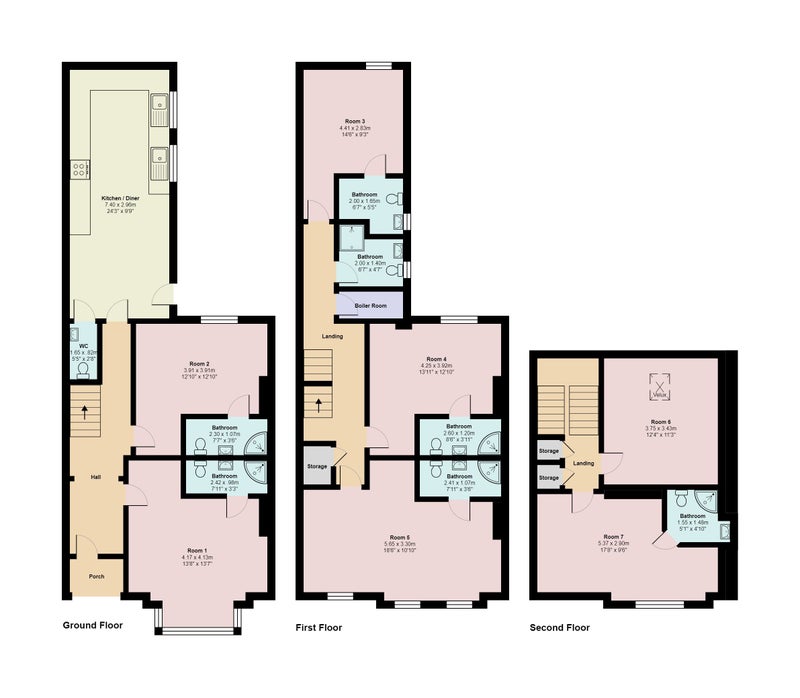 • Powerful boiler and gas central heating for hot water to all showers and radiators