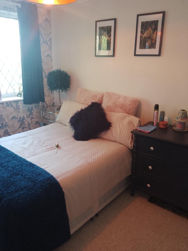 Small double room, clean and cosy with plenty of storage. Suitable for someone who justs wants a clean bed for a night for a month or two or a couple of weeks. Close to all amenities - park, shops, train station and bus station.