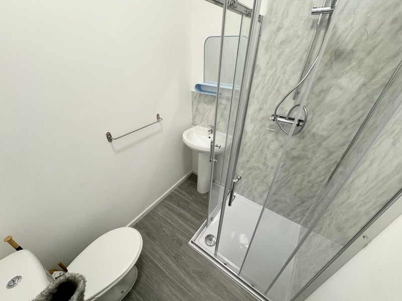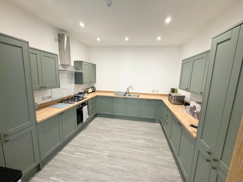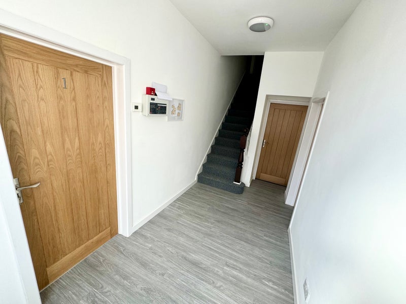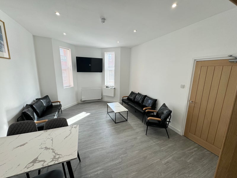 This newly refurnished HMO offers spacious rooms with their own private entrance and en-suite. Each room has a double bed with mattress, wardrobe and bedside table. En suites offer shower cubicle with shower, wash hand basin and WC. The rooms and communal areas have been done to a very high standard. The open plan kitchen lounge area has a TV, sofa and dining set to relax. Th kitchen is fitted with integrated appliances and cutlery available. There is also an internal storage area.