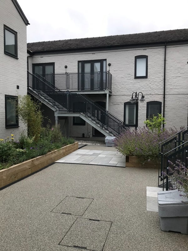 Beautiful shared courtyard space outside, secure gated access with an intercom system for entry. Walking distance to the town centre.
