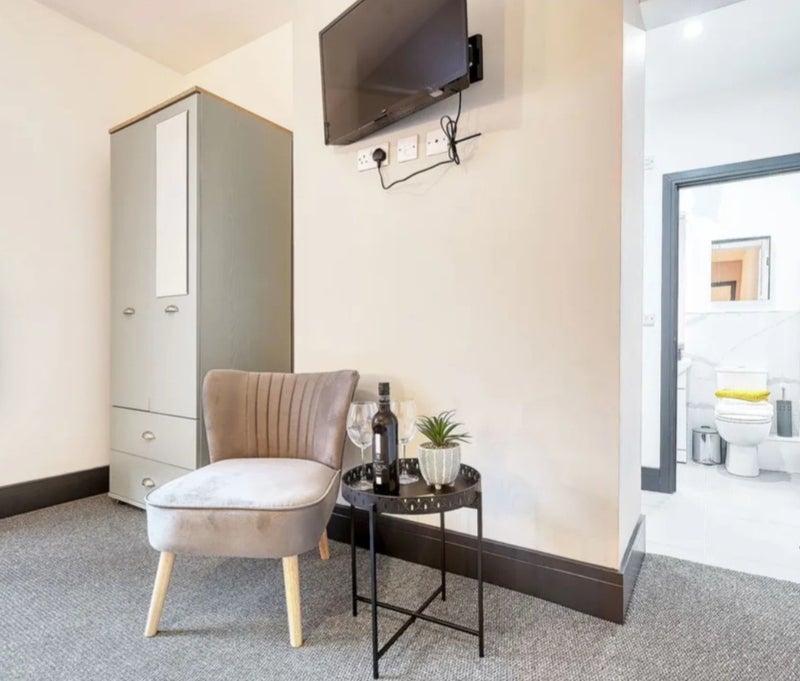 A modern furnished studio-style room available in a clean and quiet property on London Road, Stoke (ST4). The room includes a private ensuite bathroom and kitchenette, making it ideal for a professional looking for privacy and comfort.