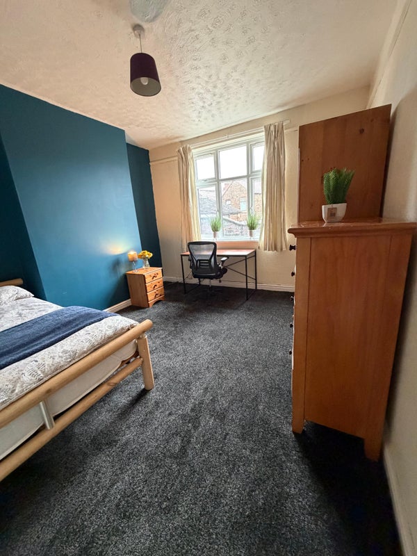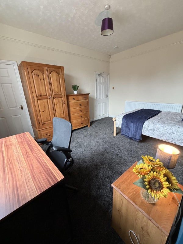The accommodation provides a large double sized room. The room is fully furnished with double bed, wardrobe, drawers, desk and chair. There is a TV aerial point with a lock on the door which you have your own key. The room is newly decorated with a new carpet. the walls have been insulated to provide extra warmth.