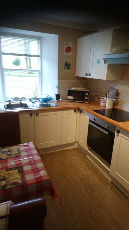 The flat comprises a bedroom with double bed and fitted wardrobes, lounge with television. A fully fitted kitchen has microwave and conventional oven, induction hob, and fridge/freezer. The bathroom has both a bath and electric shower. All necessities, bedding, towels, cooking utensils, etc have been provided. There is a washing machine located in the bathroom. The flat has programmable smart storage heaters in the main rooms. The rental of £980 per calendar month includes electricity, council tax and high speed mobile wifi.
