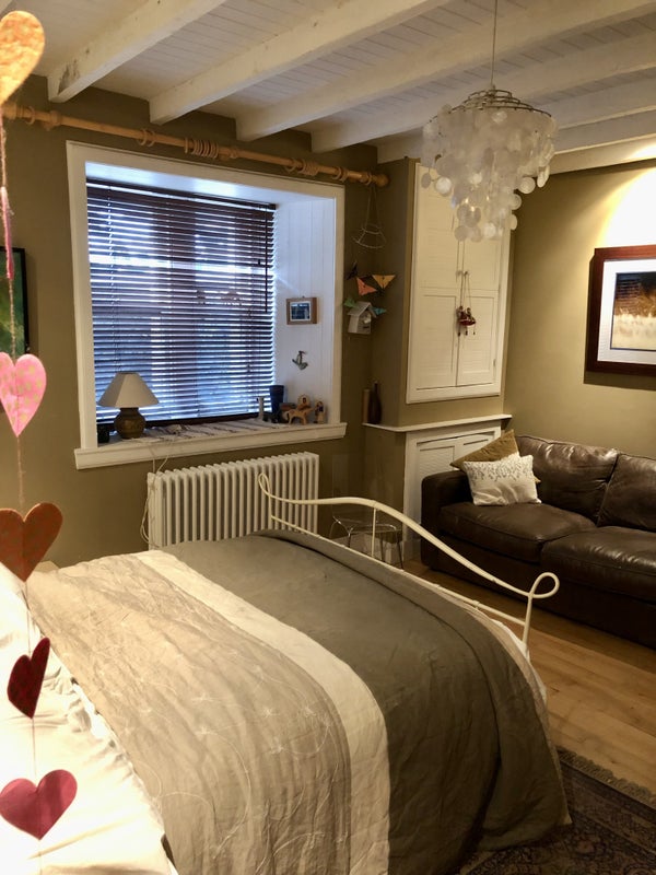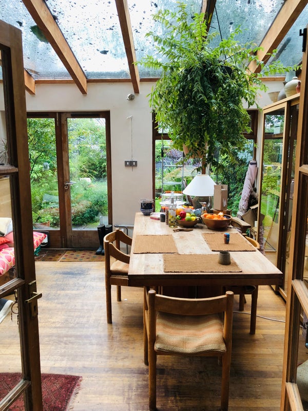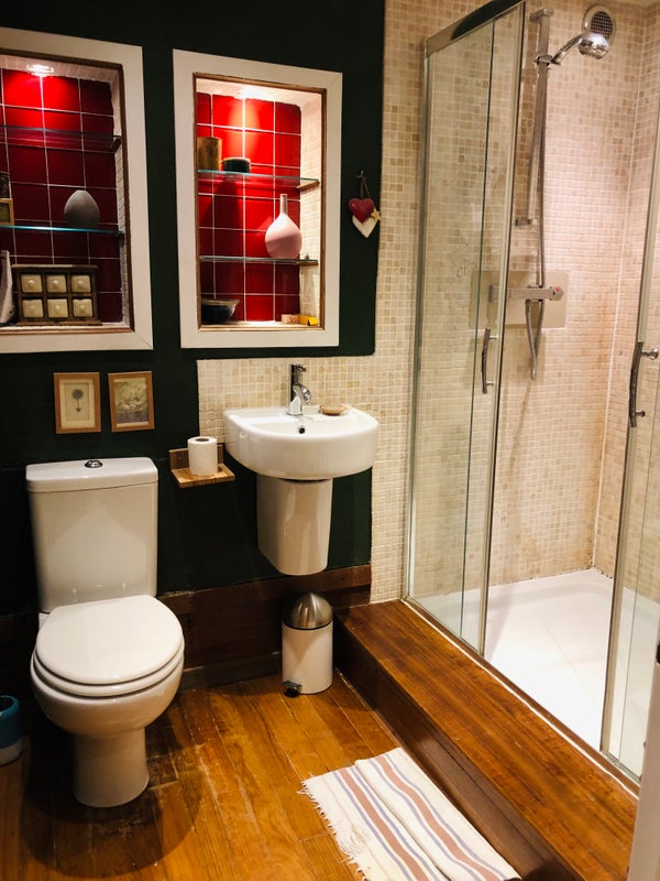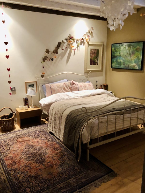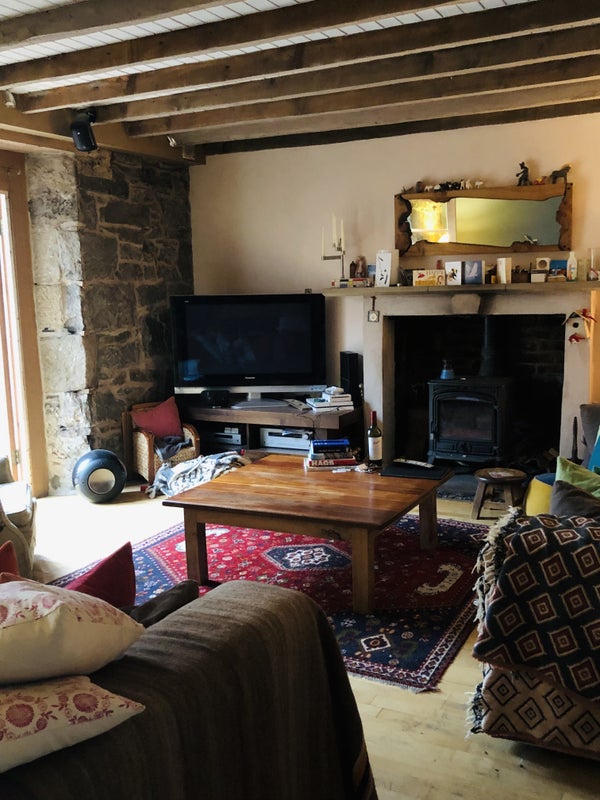 Shared space is large kitchen ( fully equipped), living room with woodburning stove (house has central heating too so no need to be alarmed!), and garden . The guest bedroom which does have a shower room next to it -- sole use, is fully furnished (kingsize bed) and has 2 large storage cupboards built in. You would be sharing the house with myself and I have a dog who's home it is too.. he’s easy but you’d have to be okay with dogs I guess.