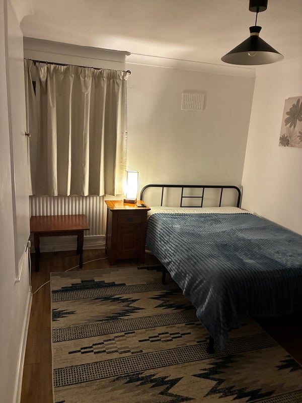 Easygoing landlady (stays downstairs , does cleaning,) offers clean, airy double room in friendly, relaxed house close to amenities, bus routes and countryside 2 mins away. Home smoke free, smoking ok outside on large patio or in greenhouse if raining. Large kitchen with washing machine, dishwasher, microwave etc. Quiet road for parking. Everyone loves it here, all have stayed long term as a combination of friendly atmosphere and respect of personal space make it a very relaxing home.(New pillows provided.)