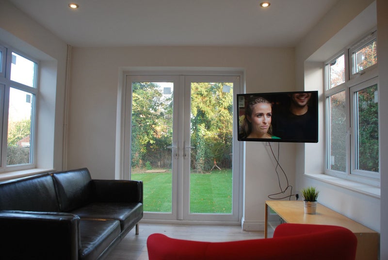 The house has a bright communal lounge area with a sofa, 40 inch flat screen HD TV with Freeview and DVD player.