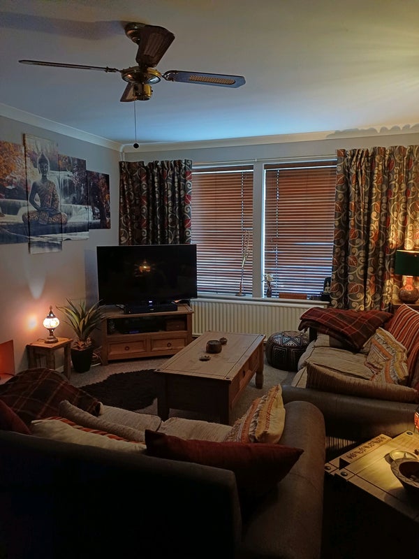 Check out pics of house . Room overlooks the garden. I have a small dog. Nice quiet area, close to shops, petrol station and local pub
