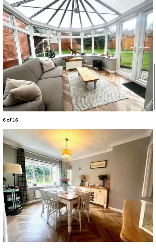 SITTING ROOM 23' x 12' (7.01m x 3.66m) Through wooden door is the sitting room with herringbone flooring, two radiators and gas fire fitted to wall with white surround. Patio sliding doors leading to rear garden, with window facing front aspect